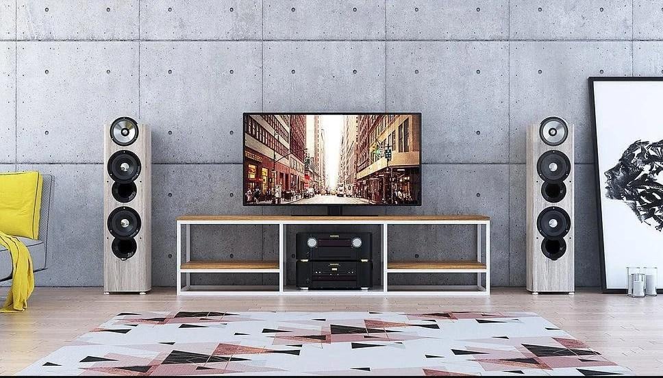 Тумба під телевізор металева у стилі Лофт GoodsMetall Т105. Каркас: Каркас зроблений із металевого профілю 20х20 з товщиною стінки 2 мм. Тумба має три полиці, основна для телевізора або інших побутових товарів, велику нішу та дві додаткові полиці. Завдяки металевому каркасу тумба дуже міцна та стійка. Полиці: Стільниці виготовлені з ламінованого ДСП Egger виробник Австрія. Матеріал полиць стійкий до вологи і легко миється, колір ДСП можна підібрати індивідуально під Вас, є великий вибір кольорів за каталогом. Колір ДСП - Дуб Сонома. Фарбування: Каркас покритий якісною порошковою фарбою, яка стійка до подряпин та запобігає корозії. Колір каркасу – Білий Мат, також можливий вибір інших кольорів. розміри: Висота – 450 мм Ширина/Довжина – 1800 мм Глибина – 400 мм Вага – 21 кг