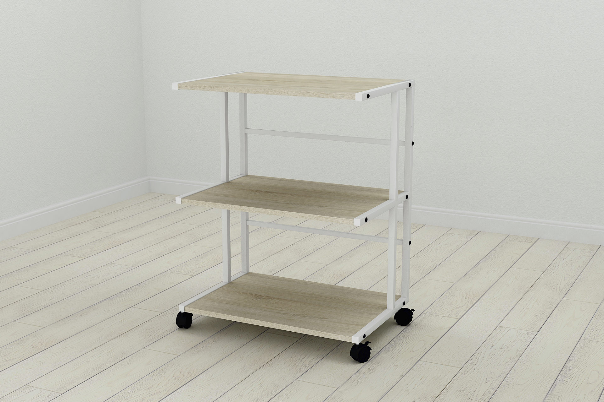 Етажерка на коліщатках Ferrum-decor Каміло 75x40x60 метал Білий ДСП Дуб Сонома 32мм (KAM0011) має чудові назви. Ніжки столу виготовлені із високоякісної профільної труби 20*20 мм, покриті порошковою фарбою. Порошкове покриття надійно захищає метал від впливу вологи, подряпин та легких ударів. Стільниця виконана з якісної листяно-деревно-стружкової плити (ЛДСП) по периметру товщиною 16мм. Дана конструкція на коліщатках надійна, забезпечує гарний термін служби етажерки. Надійна стійка конструкція, легке складання на мініфіксах та болтах. Особливості та рекомендації • При забрудненні витерти поверхню стільниці м'якою зволоженою ганчіркою • Можливість використання мильного розчину. • Не рекомендується використовувати у догляді хімічні агресивні суміші та розчинники, а також абразивні пасти. • Дотримуватись допустимих вагових навантажень. • Експлуатація в приміщеннях не нижче 8С та відносній вологості 68±12% Етажерка на коліщатках Ferrum-decor Каміло 75x40x60 метал Білий ДСП Дуб Сонома 32мм (KAM0011) характеризується високою міцністю і довговічністю. • Відмінно виглядає як вдома, так і в офісі або на дачі Матеріал: ЛДСП 16мм. Металеві ніжки. • Кромка: ПВХ 0,5 мм. •Потрібне складання. Інструмент у комплекті. Розміри: висота – 75 см, ширина – 40 см, глибина – 60 см. Товщина стільниці – 16мм. Колір металу – Білий. Колір ДСП Дуб Сонома.