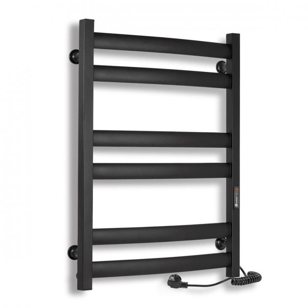 Изготовлен из высококачественной стали, покрыт оригинальной черной краской с матовым эффектом, и имеет встроенный терморегулятор с таймером. Обладая безупречным внешним видом, возможностью управления и высоким качеством сборки, черный полотенцесушитель станет не только стильным дополнением интерьера, но и обеспечит долговечную, комфортную и безопасную эксплуатацию прибора. Параметры полотенцесушителя электрического черного: высота – 700 мм; ширина – 530 мм; глубина – 96 мм.