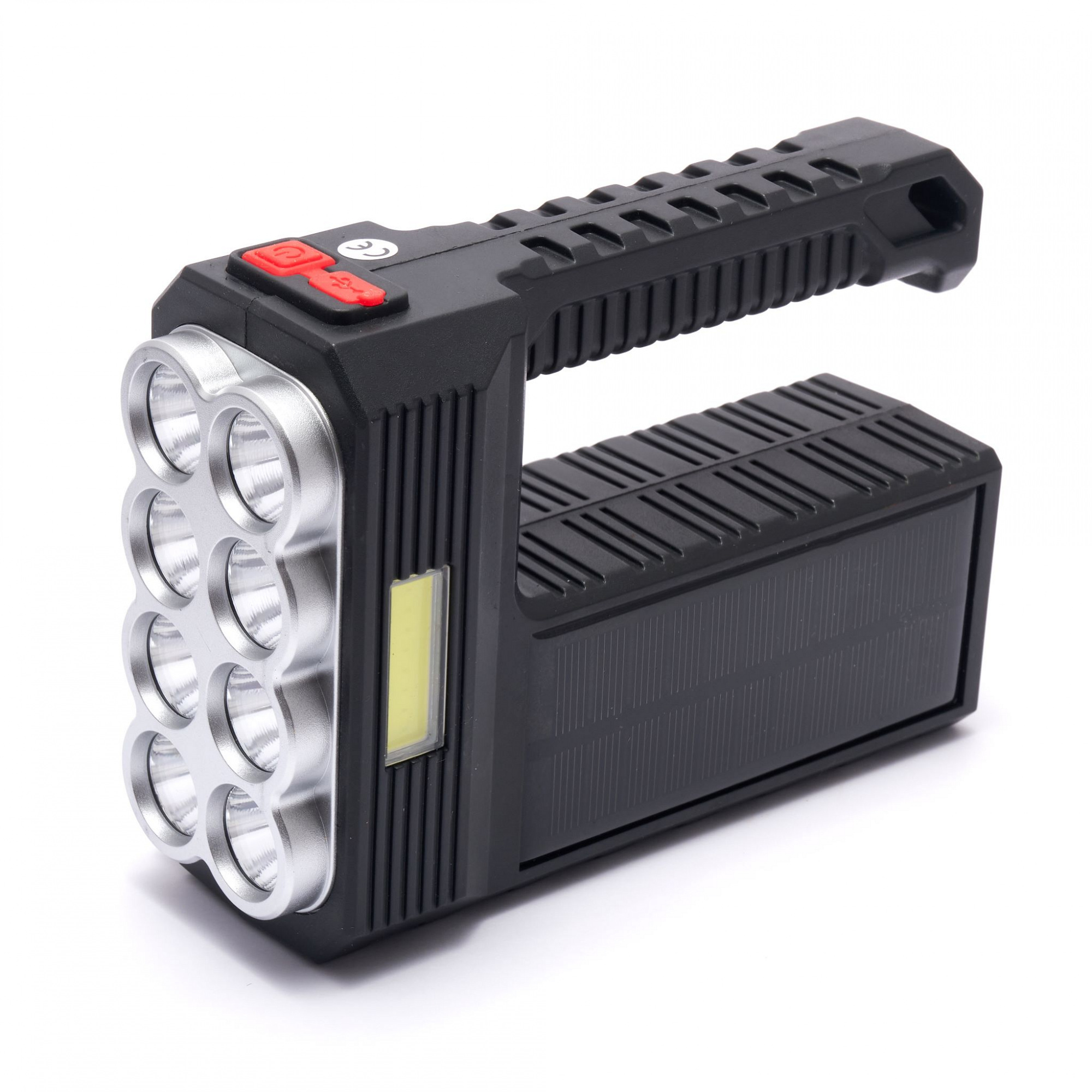 Боковой COB светильник подходит для чтения, к примеру. Большой прожектор светильника не ослепляет. Заряжается как от USB-кабеля, так и от солнечной батареи.