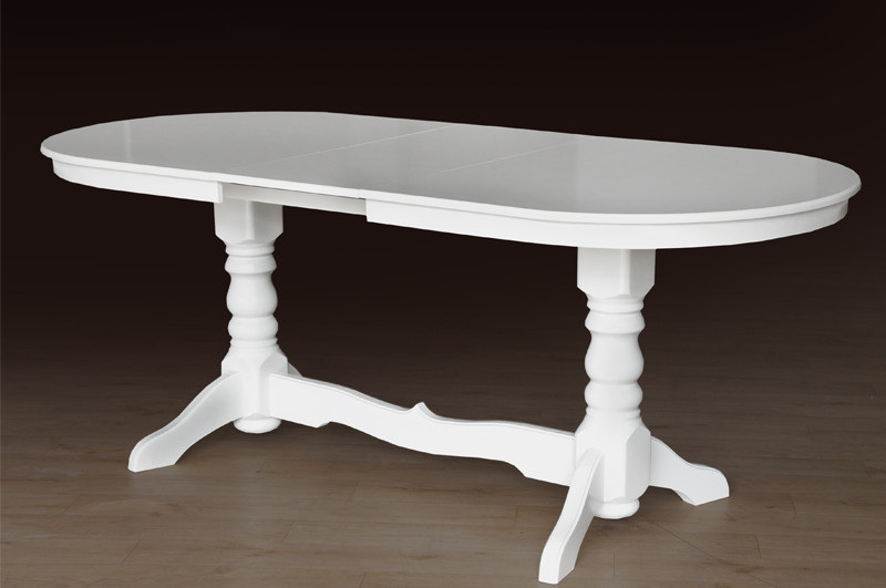 розсувний білий обідній стіл 1600+400 мм овальної класичної форми з дерев'яними ніжками - вміщує 6-10 осіб.