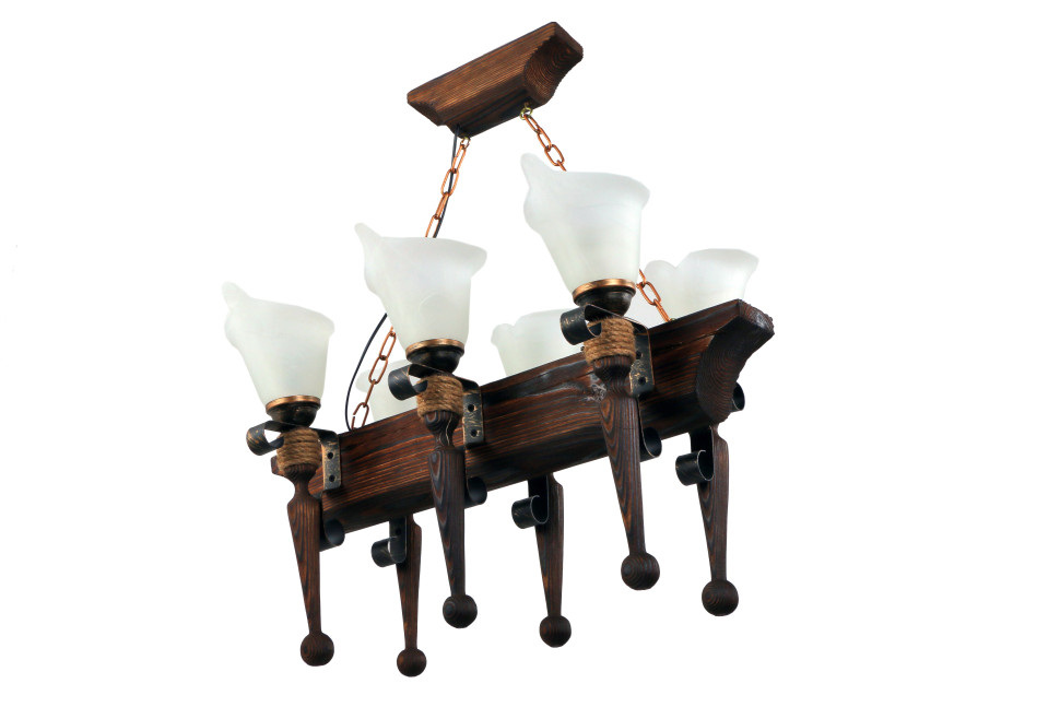 Опис Люстра дерев'яна виробництво Sirius S7141/6 темний випал на 6 плафонів