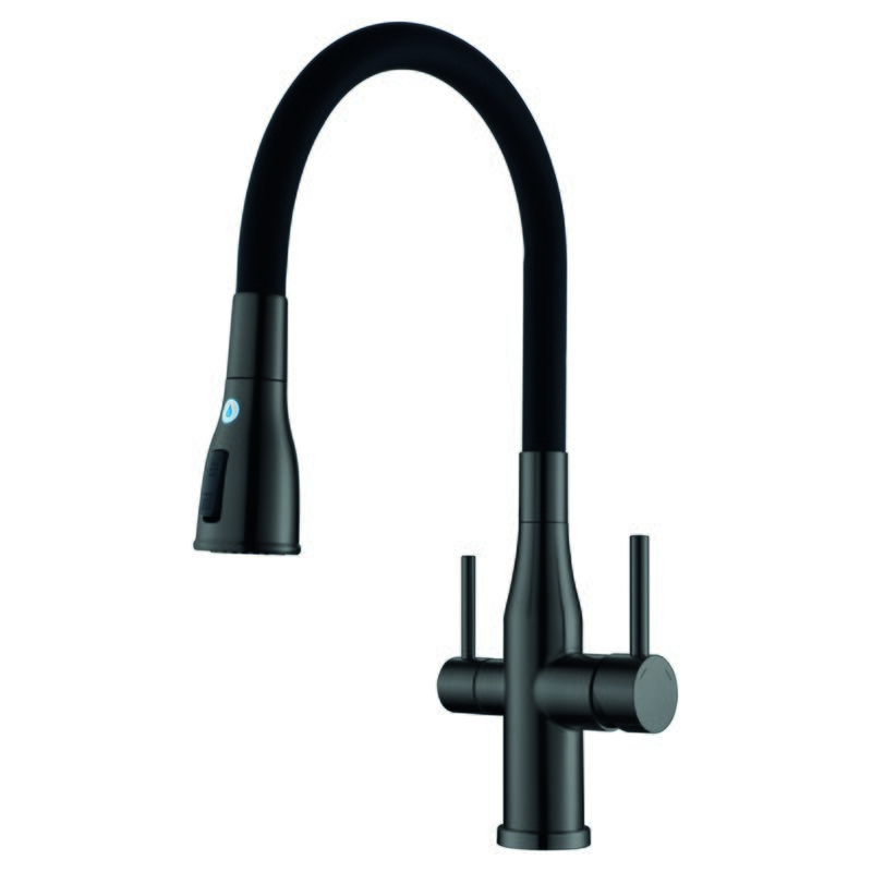 Опис Змішувач для кухні KI-72024-07 з виходом під осмос, колір графіт, чорний силіконовий гусак (нерж. сталь), Чехія.