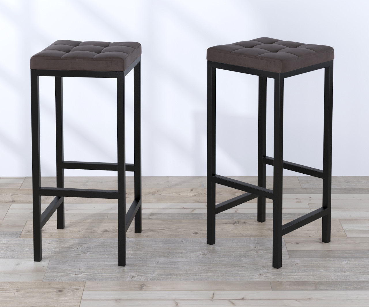 це класична модель барного стільця з м'яким сидінням в стилі loft застосовується для кухні біля барної стійки або для відвідувачів кафе та бару. Високий табурет-хокер складається з надійного цільнозварного каркаса (має поперечини для ніг) та м'якого сидіння, обшитого тканиною велюр (саме сидіння прикрашене втяжками та прострочками).
