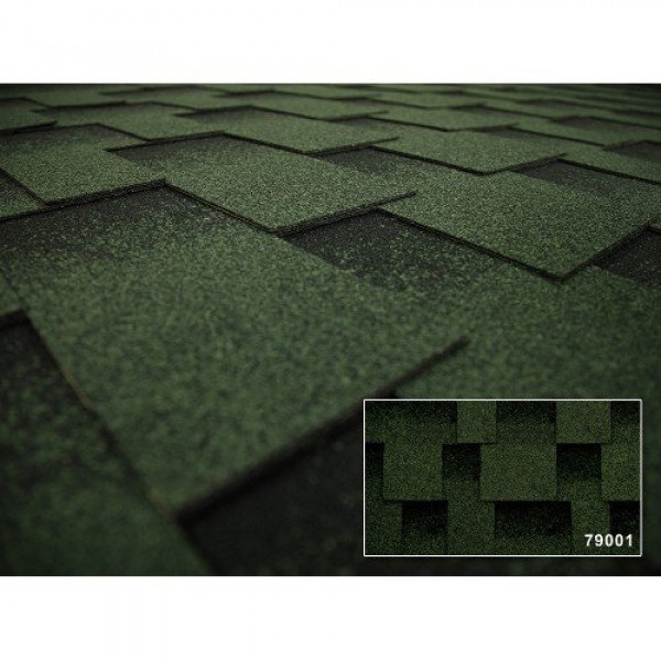 Мягкая битумная черепица Kerabit Квадро L+ - Зелено-Черный (79001) имеет разные по величине прямоугольники создают неповторимый стиль кровли, оживляют ее и помогают воплотить любые смелые архитектурные проекты. Традиционная модель шестигранника подойдет для любого типа дома: деревянного, каменного и облицованного панелями