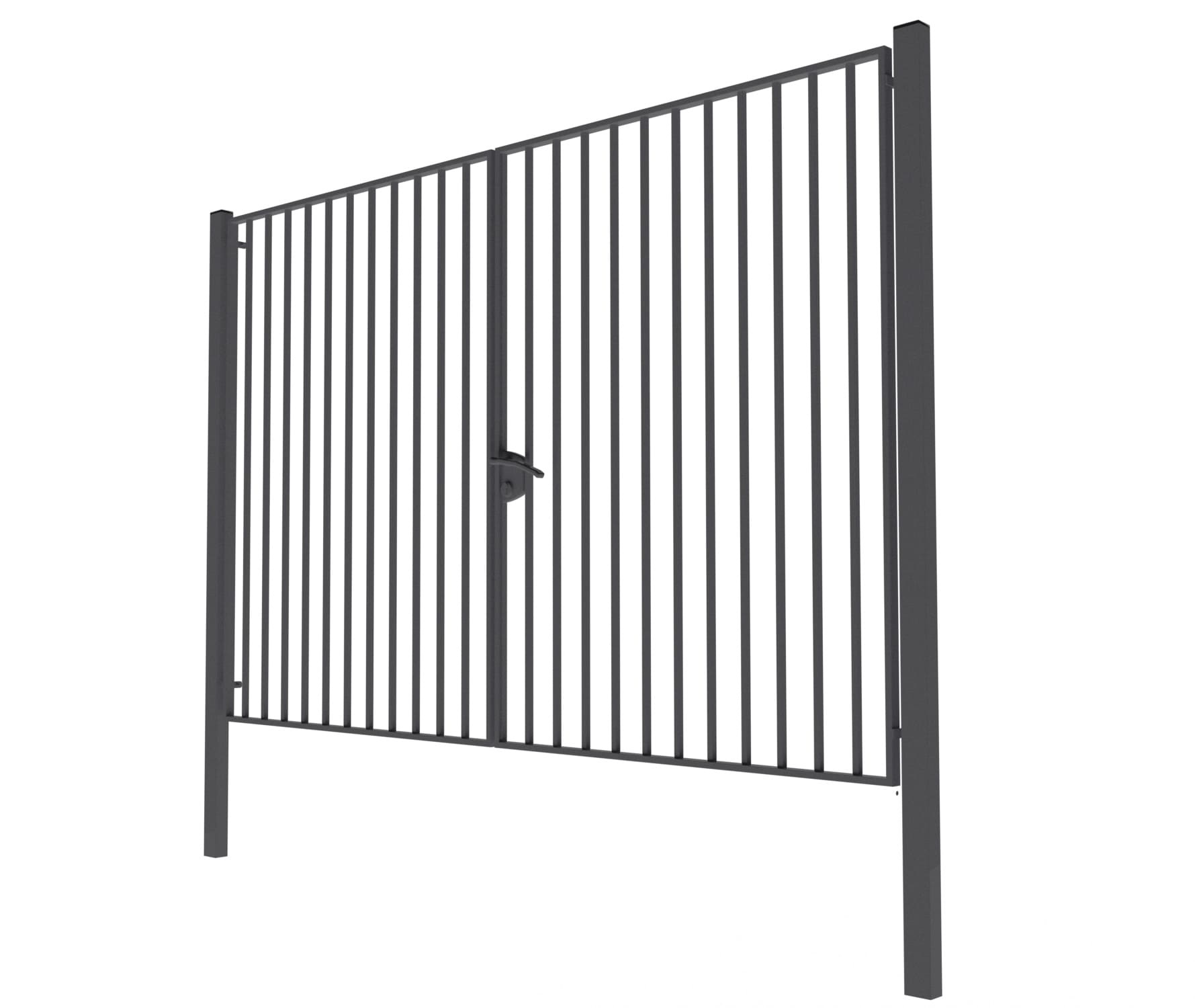 - Стовпи воріт мають отвори з різьбленням для кріплення секцій огорожі.