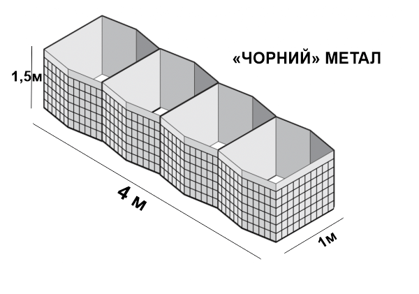 Розмір: 1х1,5х4м, (ШхВхД)Покриття: Гарячий цинк Zn;Комірка: 100 х 100 мм;Товщина прута: 4 мм чорний метал; МПаГарантія на покриття: 5 років;