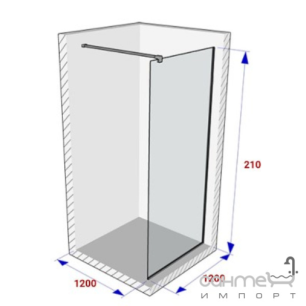 Размеры: 1200x1200x2100 мм. Производитель: Weston. Страна: Украина. Тип душевых кабин: квадратная душевая кабина. Тип установки душевой кабины: угловая. Тип двери/шторки: бездверная (стационарная, Walk-in). Конструкция: профильная. Тип поддона для душевых кабин: мелкий. Комплектация: петли, держатели, кронштейны, витраж. Материал витража: стекло. Цвет стекла: прозрачное. Цвет профиля: хром. Более подробную информацию Вы сможете найти на сайте santehimport.com
