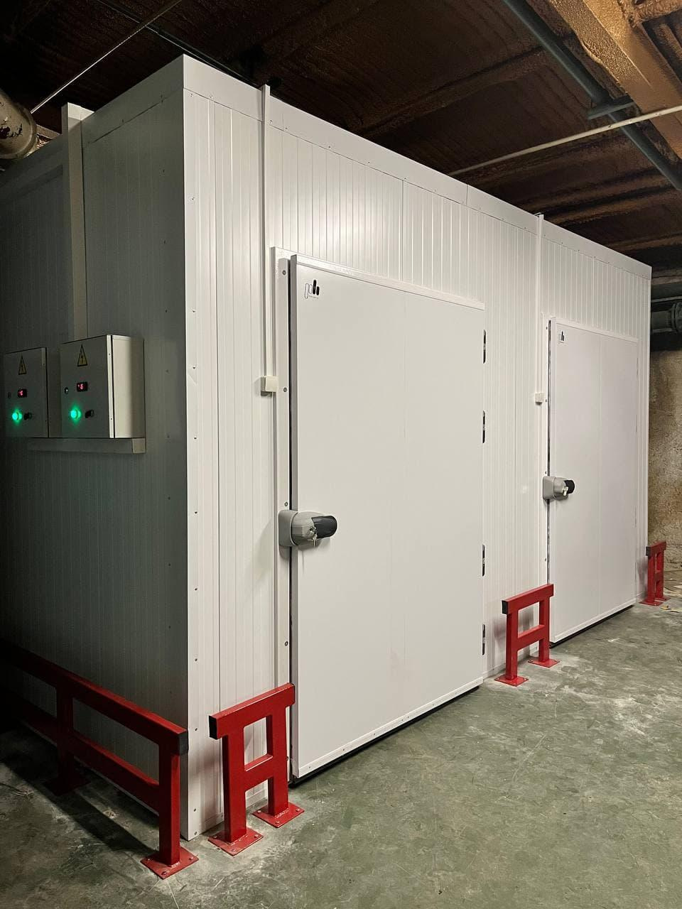 Камера заморозки або шокова камера має обмежений об'єм, тому після заморожування продукт переміщається в морозильні камери з сендвіч панелей, для тривалого зберігання. Так само шокова камера використовується для охолодження продукції перед транспортуванням. Складання холодильної камери з сендвіч панелей відбувається строго згідно з інструкціями.