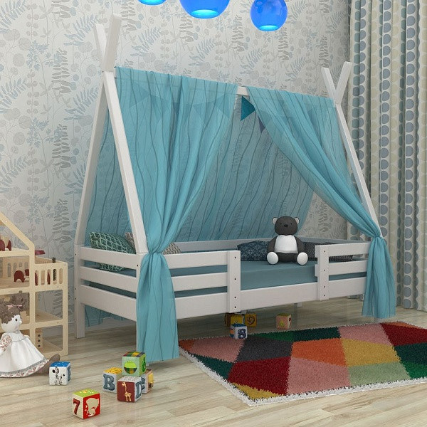 Біле ліжечко Будиночок Вігвам-2 дерев'яне 80х190 мм для дівчинки