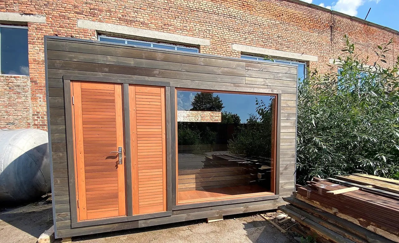 Модульна лазня із панорамним вікном 4х2.3м від виробника Thermowood Production