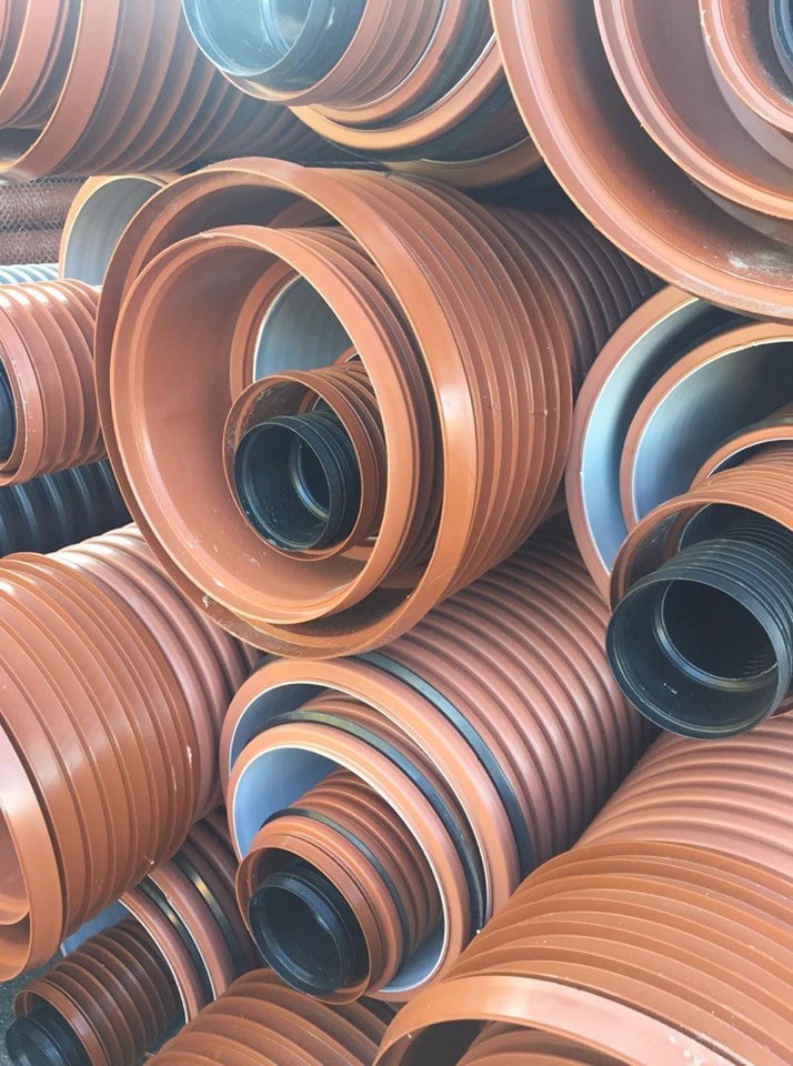 Зовнішні гофровані (двошарові) каналізаційні труби з поліпропілену ПП виробництва Plastimex (Plasticor). та 6 м. Труби двошарові, внутрішній шар – гладкий білого кольору, зовнішній шар гофрований оранжевого кольору. Використовуються для будівництва санітарної та дощової, промислової та побутової каналізації. Основними перевагами каналізації Plastimex є: - матеріал з якого виготовлені труби дозволяють транспортувати стічні води з максимальною робочою температурою до 90 ° C та до 95 ° C короткочасно; — Системи труб та фітингів PLASTICOR стійкі до дії стоків з кислотністю від рН 2 до рН 12. Завдяки цьому труби Plastimex можуть застосовуватися не тільки для відведення побутових стоків та зливової води, а й у виробничих системах та хімічно забрудненому ґрунті; дуже гладка поверхня призводить до відсутності осаду в трубі; - Труби мають високу удароміцність при низьких температурах, через що можуть застосовуватися при температурах до -20 ° С; - Труби відрізняються високою міцністю на стирання серед труб з інших матеріалів, що дозволяє конструювати канали з великим ухилом, а також транспортувати рідини сильно забруднені мулом або піском;