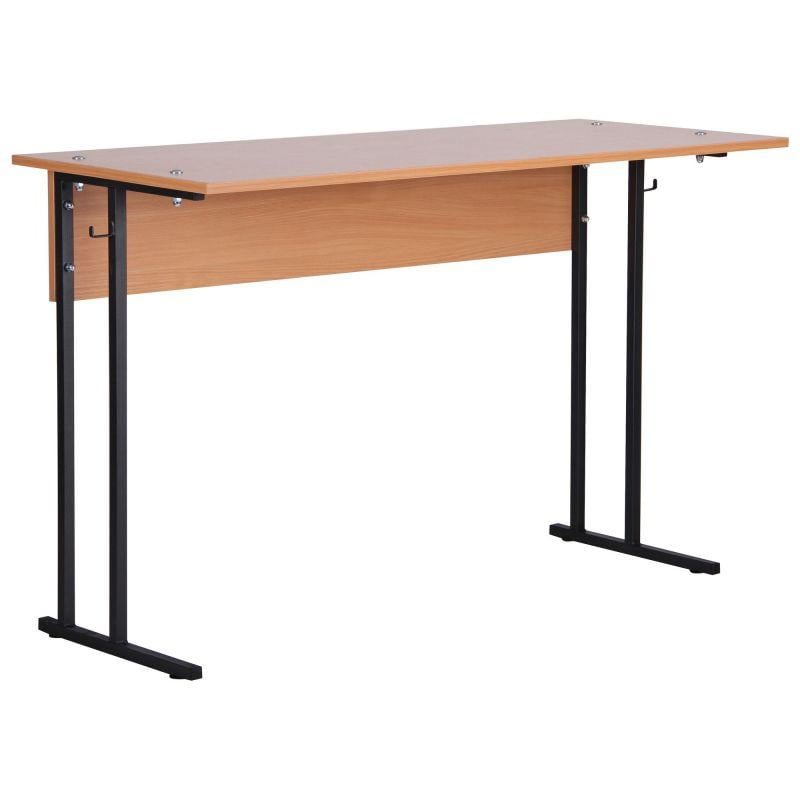 відмінно підійдуть для обладнання аудиторій, класів у школі, їх можна об'єднувати у довгі столи - трибуни, що дуже зручно і дозволить налаштувати в залежності від приміщення. Це прямокутна модель в кольорі стільниці "бук" і металевому каркасі "чорний".