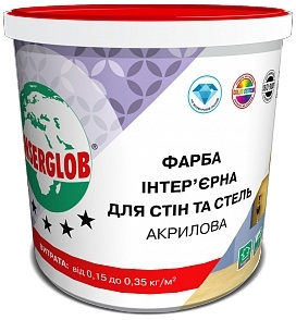 Характеристики товару Фарба інтер'єрна акрилова ANSERGLOB Для Стін та Стелі 14 кг