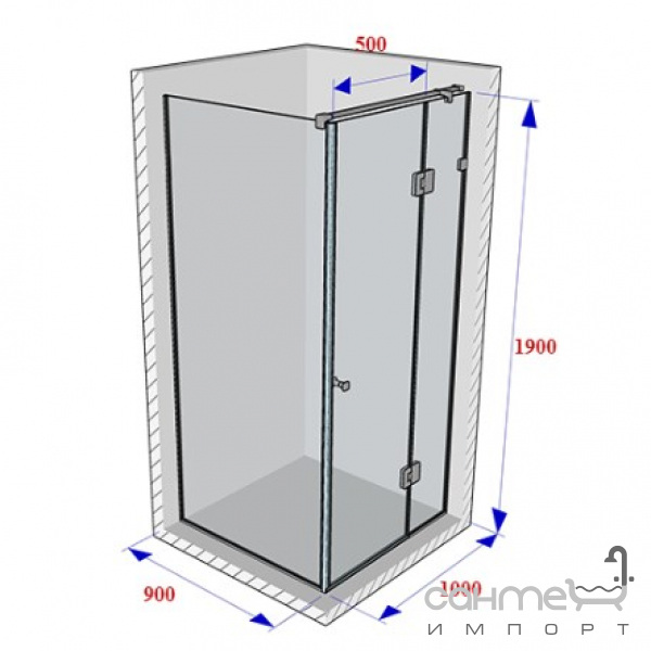 Размеры: 1000x900x1900 мм. Производитель: Weston. Страна: Украина. Тип душевых кабин: прямоугольная душевая кабина. Тип установки душевой кабины: угловая. Тип двери/шторки: распашная (поворотная). Конструкция: профильная. Тип поддона для душевых кабин: мелкий. Количество створок дверей в душевой кабине или перегородке: одна. Комплектация: ручки, витраж, петли, держатели, кронштейны. Материал витража: стекло. Цвет стекла: прозрачное. Цвет профиля: хром. Более подробную информацию Вы сможете найти на сайте santehimport.com