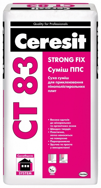 Характеристики товару Клей для пенопласта CERESIT СТ 83 25кг