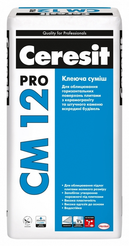 Характеристики товару Клей для напольных плит и керамогранита CERESIT СМ 12 PRO 27 кг