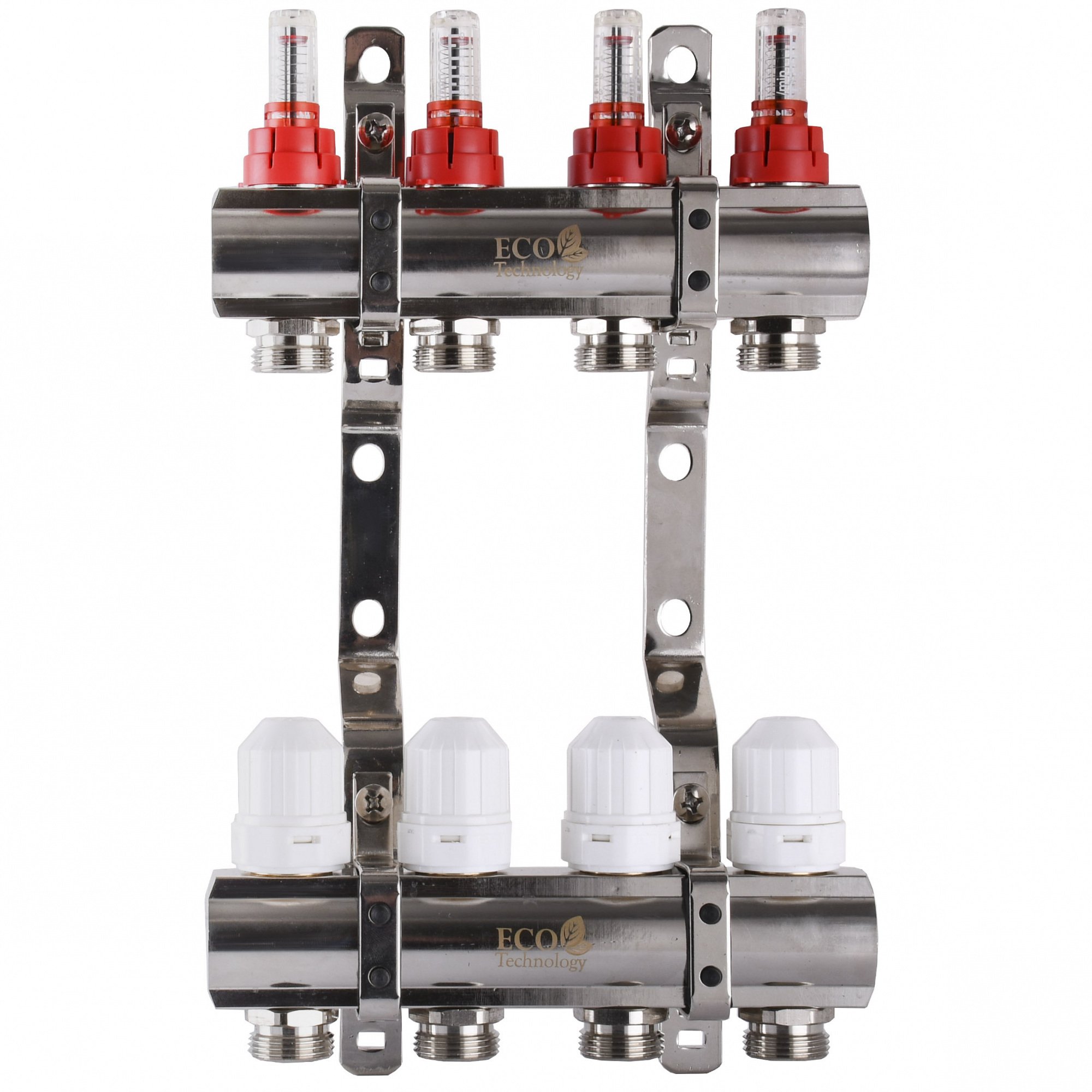 Коллектор с расходомерами, регуляторами и креплением ECO 001D 1″x4