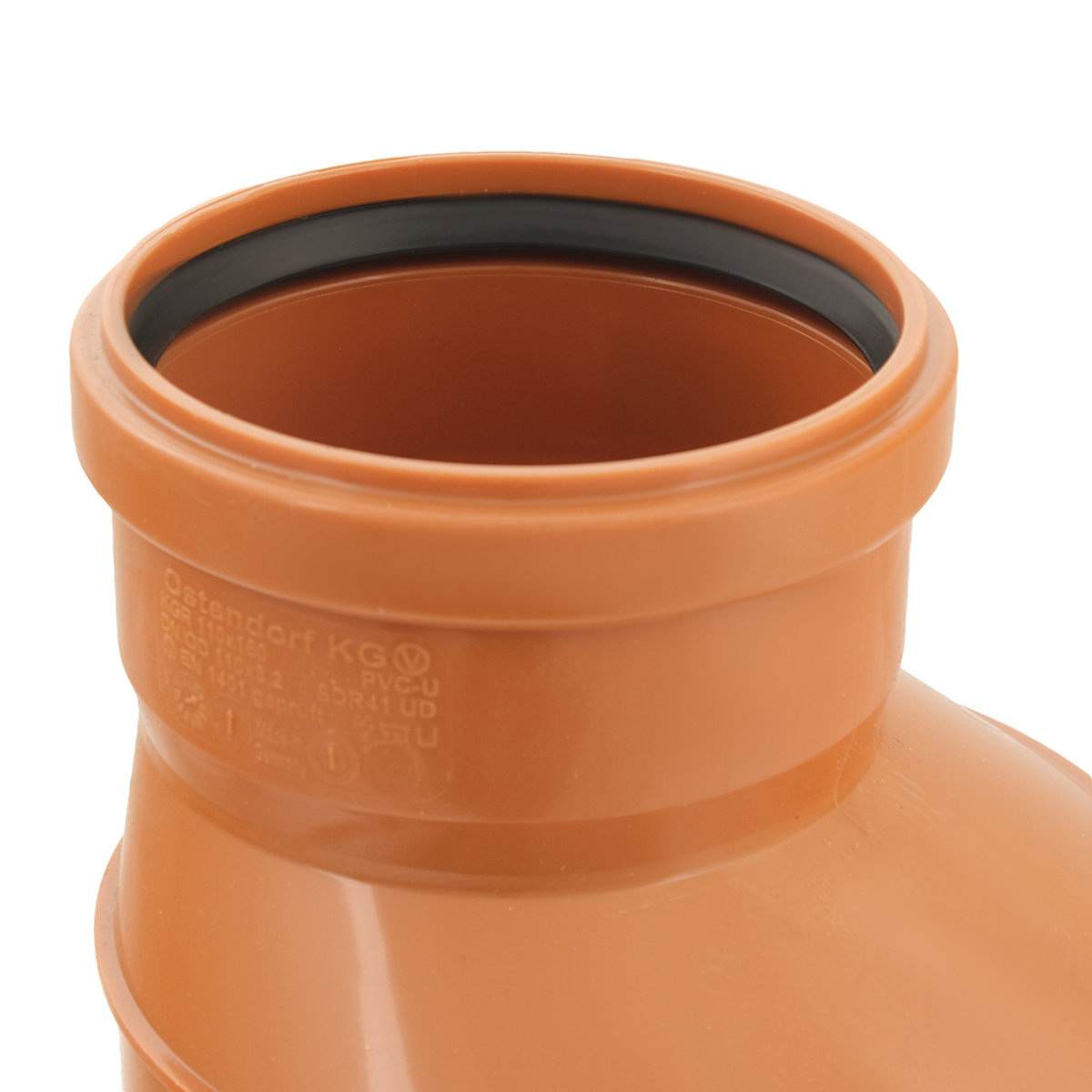 Редукция Ostendorf изготовлена из непластифицированного поливинилхлорида. Свойства материала таковы, что система канализации является очень легкой и удобной при монтаже. Наружная канализация из ПВХ характеризуется безотказностью при эксплуатации благодаря высокой плотности соединений, высокой химической устойчивости и гладкой поверхности.