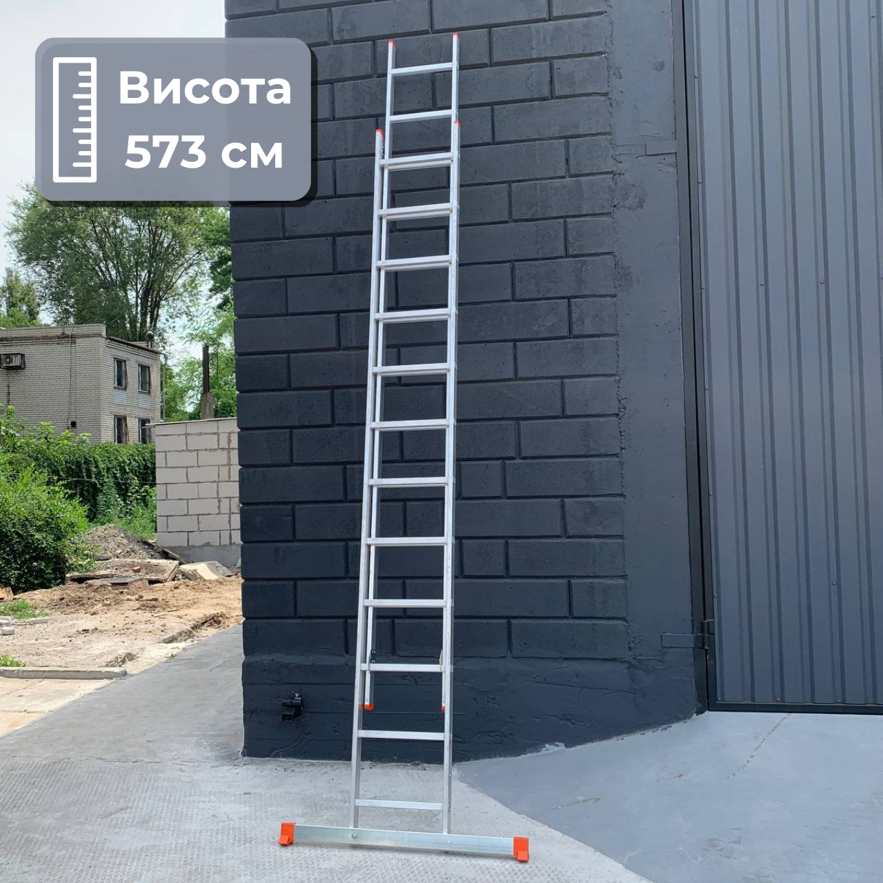 Драбина 6 м алюмінієва двосекційна 2 х 12 сходинок можна використовувати як розсувну приставну драбину та як двосторонню двосторонню драбину, що вільно стоїть.
