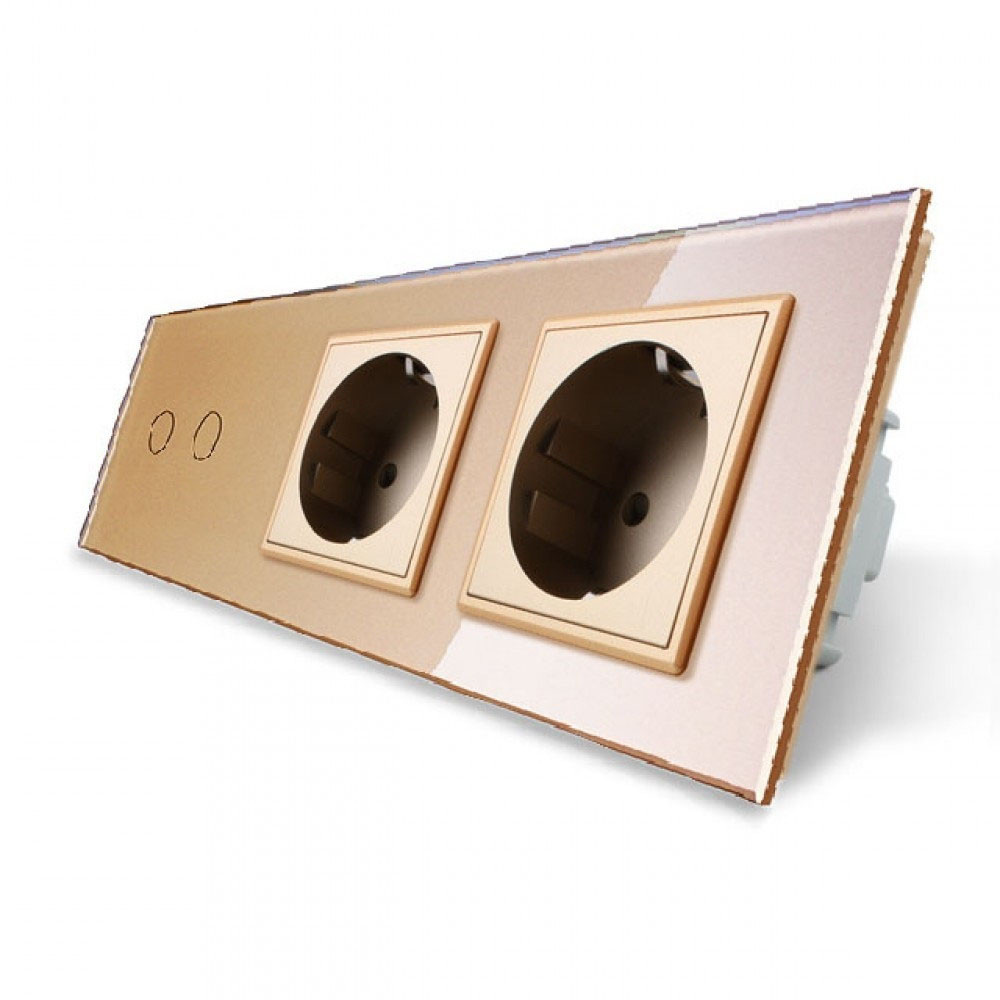 Сенсорний прохідний вимикач Livolo 4 каналу (2-2) золото скло (VL-C702S/C702S-13)