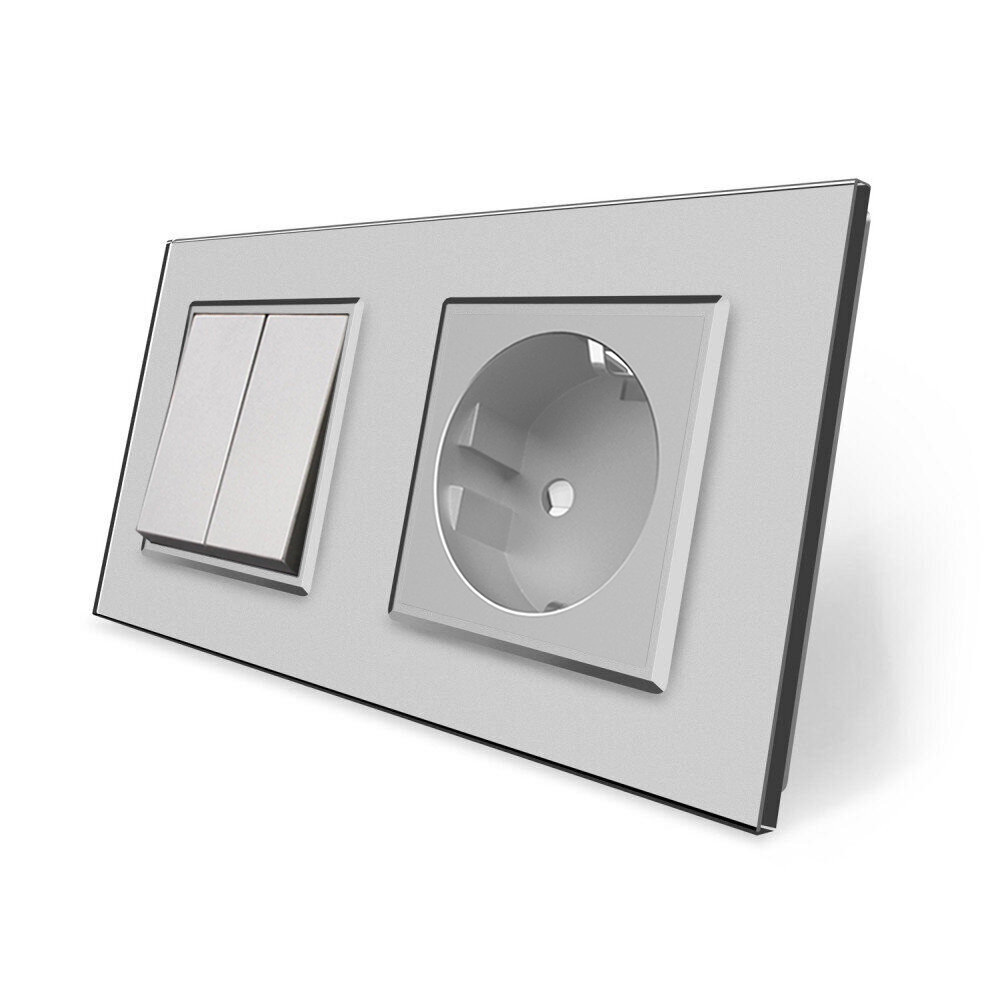 Комплект одноклавішний із двоклавішним вимикачем сірий скло Livolo (VL-C7K1K2-15)