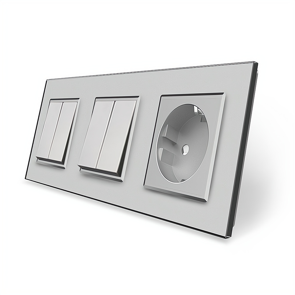 Комплект двоклавішних вимикачів сірий скло Livolo (VL-C7K2K2-15)
