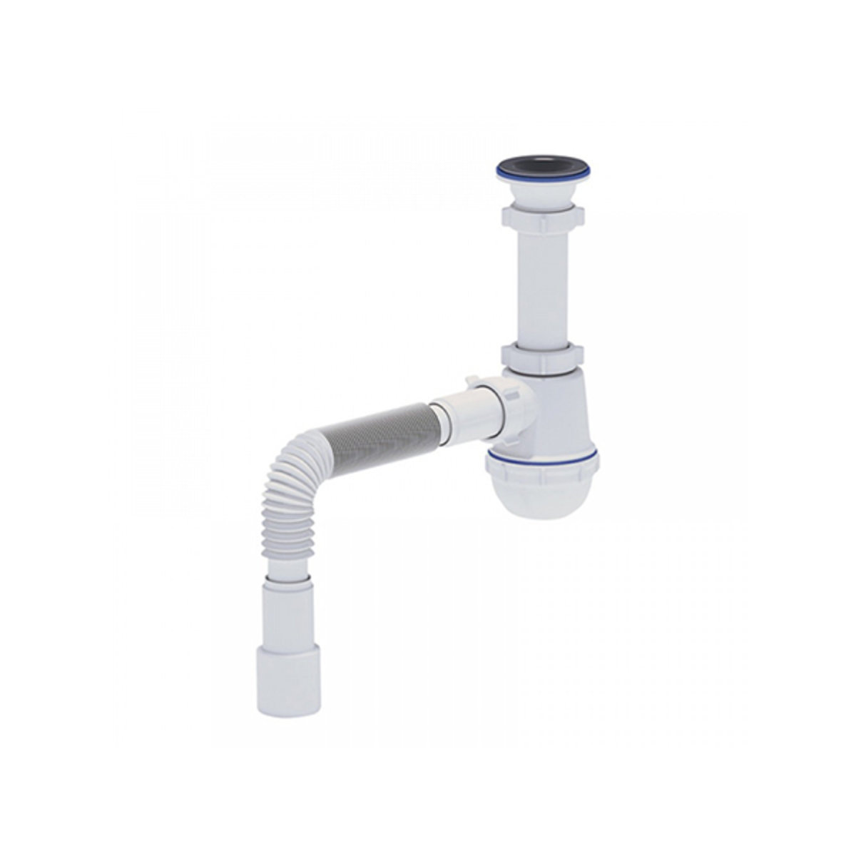 Сифон для кухни Ани-Пласт \"А 01 15\" 1 1/2\"x40 (разборная горловина) с гибкой трубой 40x40/50 предназначен для установки с любой сантехнической арматурой. Благодаря наличию гибкой отводной трубы, сифон позволяет легко решить проблему отвода сточных вод в условиях ограниченного пространства. Вся сантехника имеет сертификаты качества и санитарно-гигиенические заключения.