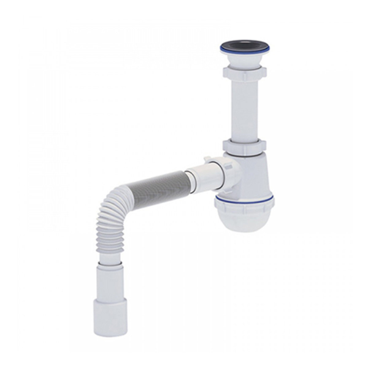 Сифон для кухни Ани-Пласт \"С 01 15\" 1 1/2\"x40 (разборная горловина) с гибкой трубой 40x40/50 предназначен для установки с любой сантехнической арматурой. Благодаря наличию гибкой отводной трубы, сифон позволяет легко решить проблему отвода сточных вод в условиях ограниченного пространства. Вся сантехника имеет сертификаты качества и санитарно-гигиенические заключения.