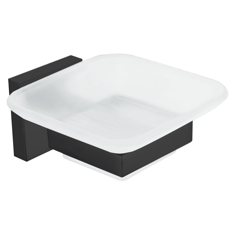 Квадратная мыльница, черное матовое покрытие, материал: цинк, нержавеющая сталь, матовое стекло, гарантия 3 года