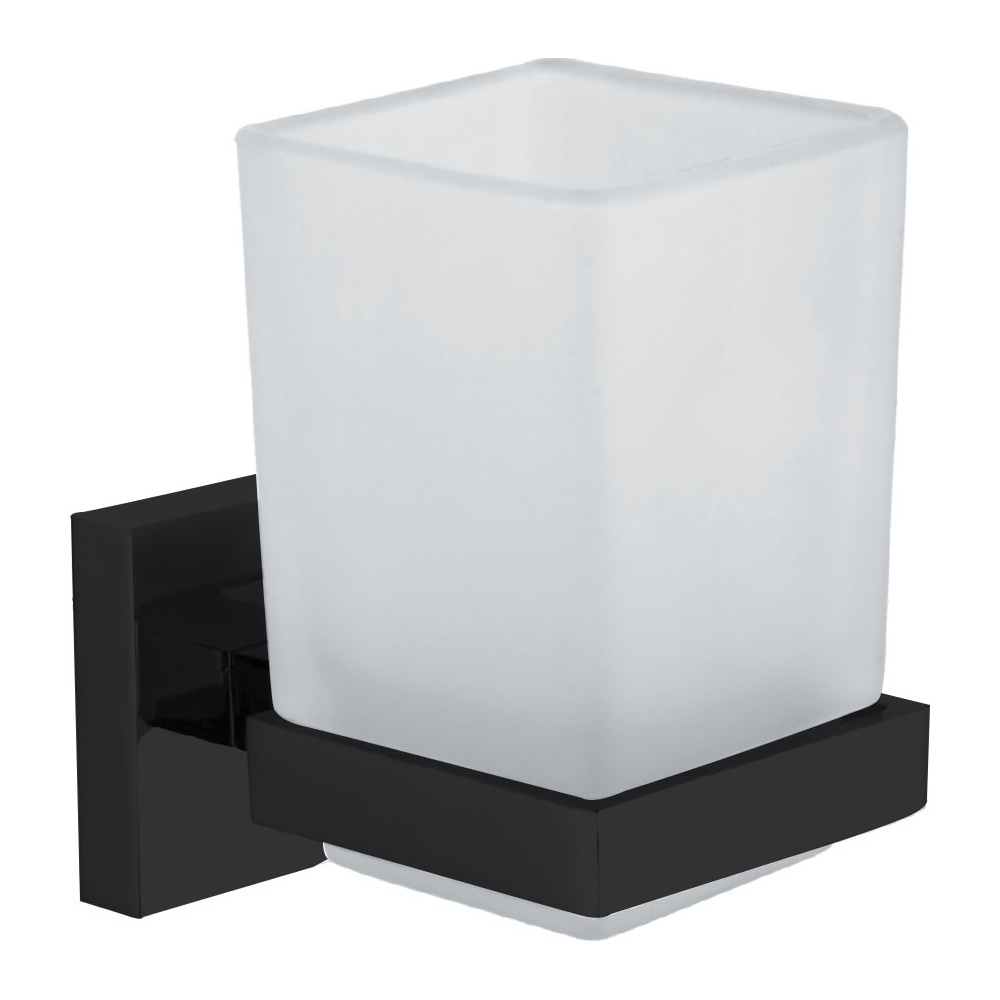 Квадратный стакан, черное матовое покрытие, материал: цинк, нержавеющая сталь, матовое стекло, гарантия 3 года