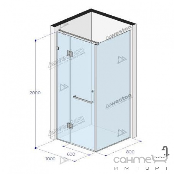 Душевая кабина Weston WK3 900x900x2000 polish/прозрачное стекло, ручка-полотенцедержатель
