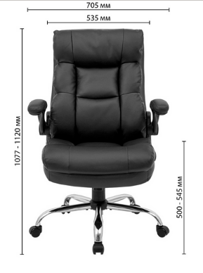 - Висота крісла зі спинкою в нижньому положенні: 1077 мм.