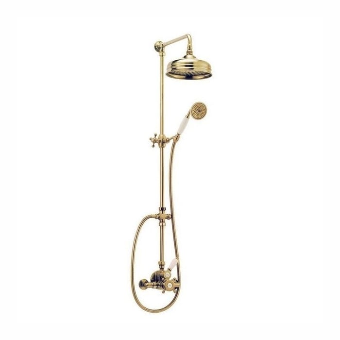 Душевая система Huber Victorian с термостатом D200 мм, с ручным душем, бронза/керамика белая (590.VT22H.BA)