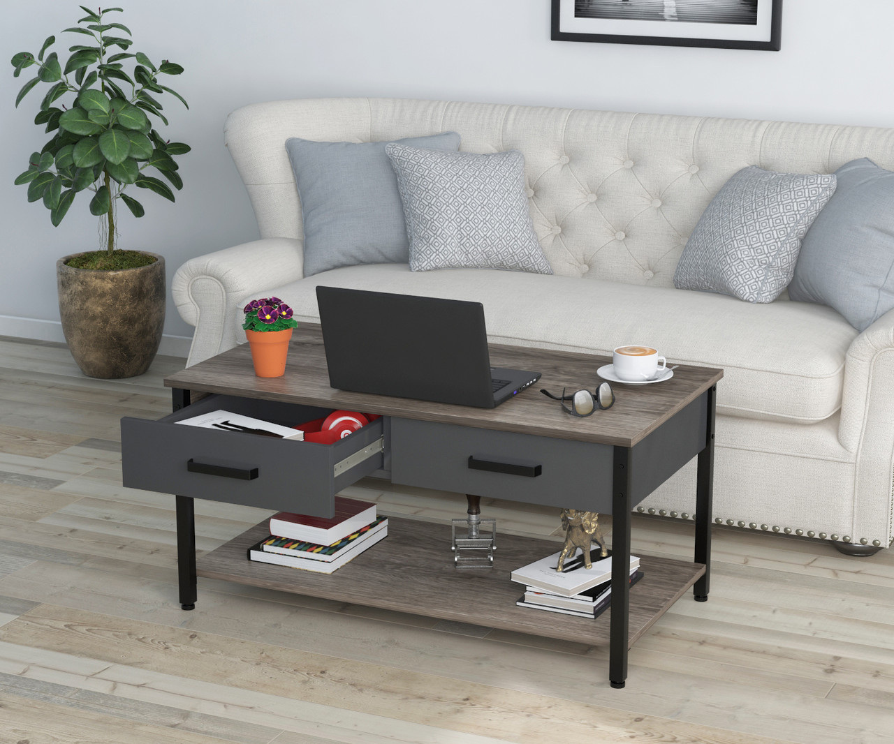 Журнальний столик L-6 Loft-design 920х500х450 мм із ящиками дуб-палену