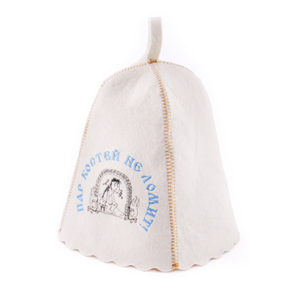 Банна шапка незамінний аксесуар при відвідуванні лазні та сауни. Окрім оригінального зовнішнього вигляду або веселого слогана вишитого на ній шапка виконує дуже важливу роль – вона береже голову від перегріву. Ми рекомендуємо підходити до вибору шапки для лазні та сауни не менш відповідально, ніж при виборі іншого головного убору. Банна шапка з вишивкою "Пар кісток не ломить" виготовлена з натуральної повсті. Колір повсті білий. Модель має всередині петельку, яка дозволяє повісити шапку на гачок. Цей матеріал має стійкий колір, який не линяє та не вигоряє. Догляд за виробом: У пральній машинці вироби з фетру потрібно прати в режимі вовни, можна віджимати в делікатному режимі віджиму. Температура води не повинна перевищувати 40 градусів, особливо якщо кольорові вироби. Сушити потрібно виріб у розгорнутому вигляді.