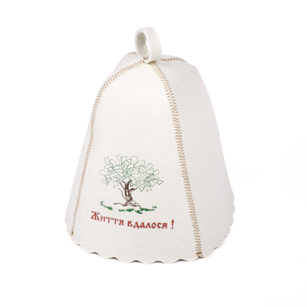 Банна шапка незамінний аксесуар при відвідуванні лазні та сауни. Окрім оригінального зовнішнього вигляду або веселого слогана вишитого на ній шапка виконує дуже важливу роль – вона береже голову від перегріву. Ми рекомендуємо підходити до вибору шапки для лазні та сауни не менш відповідально, ніж при виборі іншого головного убору.Банна шапка з вишивкою Життя вдалося. виготовлена з натуральної повсті. Колір повсті білий. Модель має всередині петельку, яка дозволяє повісити шапку на гачок. Даний матеріал має стійкий колір, який не линяє і не вигоряє. режимі віджиму. Температура води не повинна перевищувати 40 градусів, особливо якщо кольорові вироби. Сушити потрібно виріб у розгорнутому вигляді.