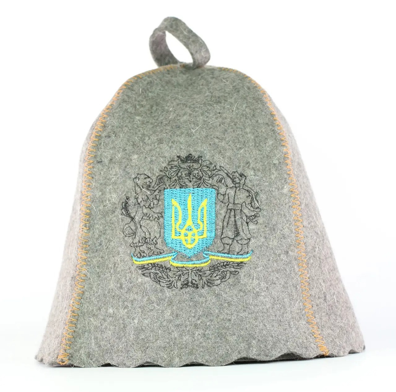 Банная шапка незаменимый аксессуар при посещении бани и сауны. Кроме оригинального внешнего вида или веселого слогана вышитого на ней шапка выполняет очень важную роль - она бережет нашу голову от перегрева. Мы рекомендуем подходить к в выбору шапки для бани и сауны не менее ответственно, чем при выборе другого головного убора. Если вы посещаете баню или сауну регулярно и любите париться при высокой температуре и влажности, то мы рекомендуем приобрести шапки разработанные и пошитые нашей компании. Банная шапка с вышивкой "Герб Украины" изготовлена из натурального войлока, в составе которого овечья шерсть. Цвет серый. Модель имеет внутри петельку, которая позволяет повесить шапку на крючок . Данный материал имеет стойкий цвет, который не линяет и не выгорает. Уход за изделием: В стиральной машинке изделия из фетра нужно стирать в режиме для шерсти, можно отжимать в деликатном режиме отжима. Температура воды не должна превышать 40 градусов, особенно если изделия цветные. Сушить нужно изделие в развернутом виде.