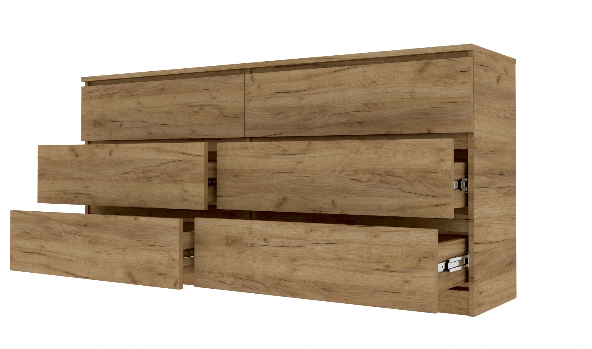 Опис Широкий комод Мастер Форм з 6 висувними шухлядами телескопи Дуб крафт золотий (150х37,6х73 см)