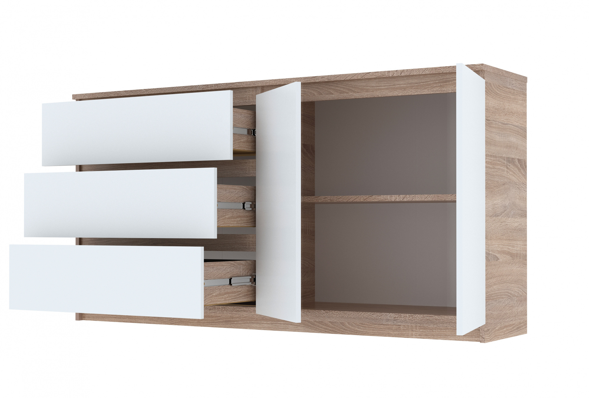 Комод Мастер Форм з 2 дверцятами та 3 висувними шухлядами телескопи Дуб сонома + білий (158х37,6х73 см)
