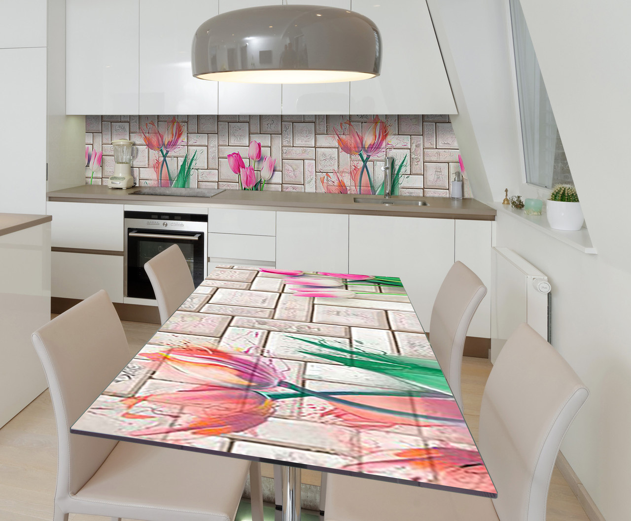 Опис Наклейка вінілова на стіл Zatarga "Тюльпани Плитка" 600х1200 мм