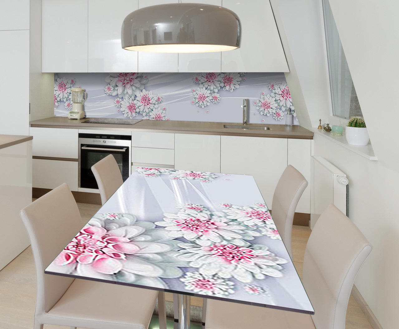 Опис Наклейка вінілова на стіл Zatarga "Рожеві Жоржини" 650х1200 мм