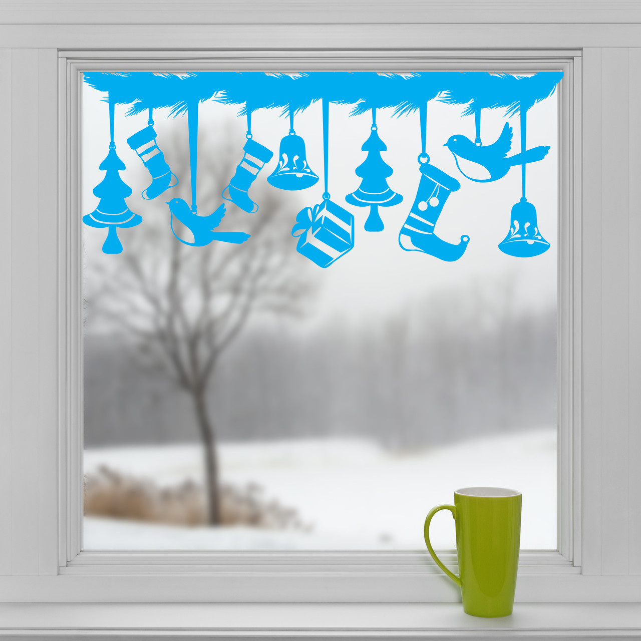 Новорічна вінілова наклейка Zatarga ЯЛИНА ГІЛКА 1100 х 500 мм Блакитна (Z202010/1)