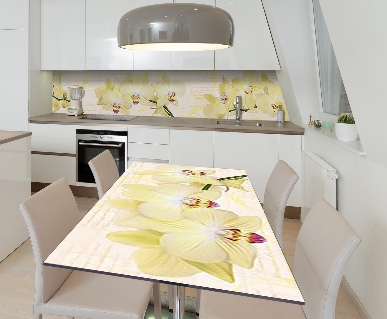 Наклейка вінілова на стіл Zatarga «Жовті Орхідеї на чорному камені» 650х1200 мм Z180557/1st