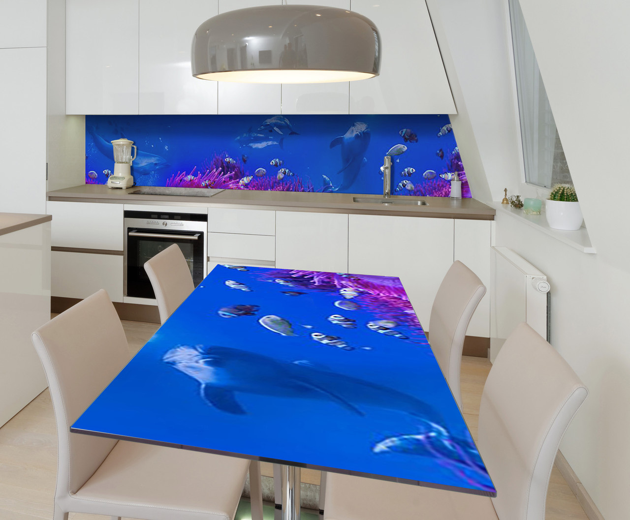 Опис Наклейка вінілова на стіл Zatarga "Підводний світ Дельфін" 650х1200 мм