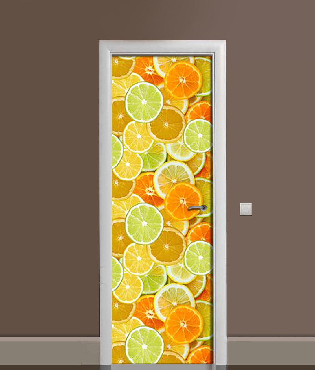 Наклейка на двері Zatarga «Цитруси з м'ятою» 650х2000 мм вінілова 3Д наклейка декор самоклеюча