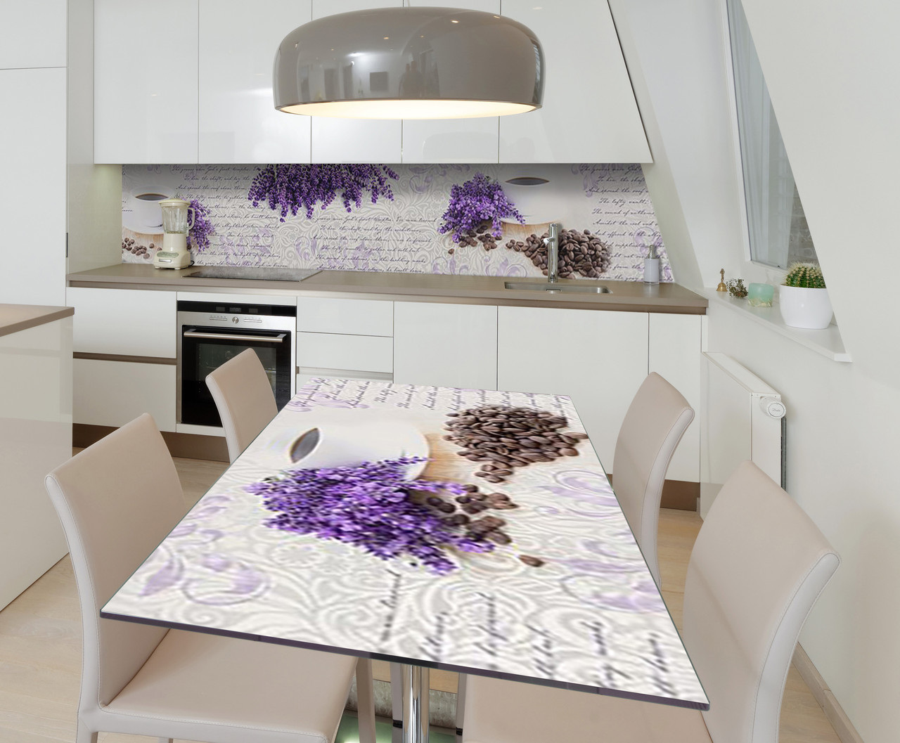 Наклейка вінілова на стіл Zatarga "Квіти Лаванди Кава" 600х1200 мм Z181704st