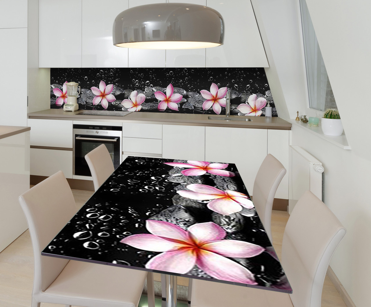 Опис Наклейка вінілова на стіл Zatarga "Рожеві Квіти на Чорному тлі" 650х1200 мм Z181717/1st