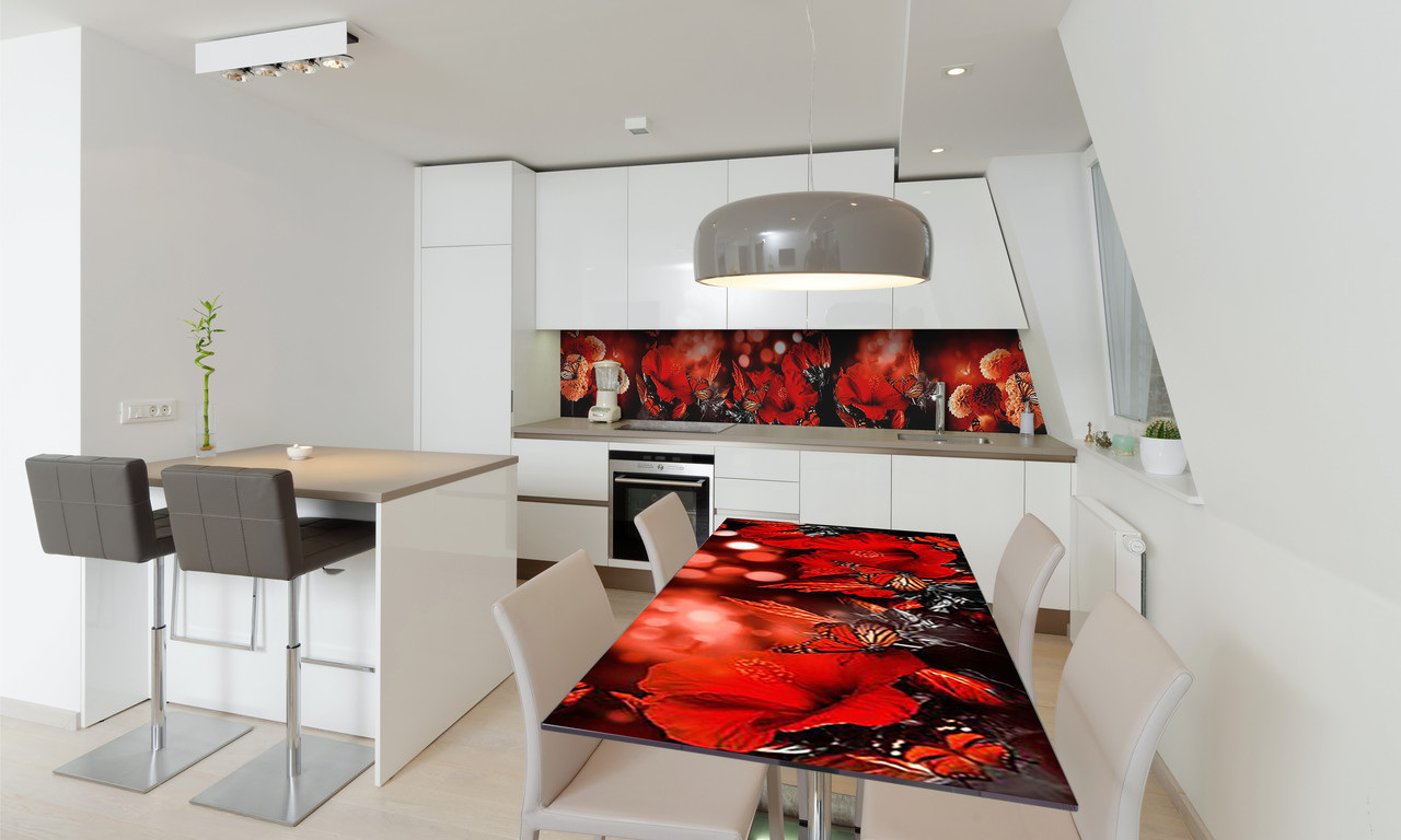 Наклейка вінілова на стіл Zatarga «Червоні квіти та метелики метелики» 600х120 мм;