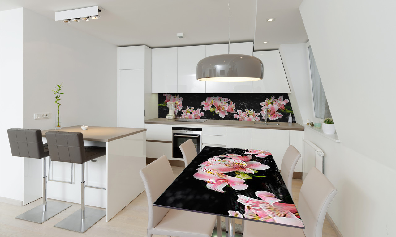 Опис Наклейка вінілова на стіл Zatarga «Рожеві Альстромерії» 600х1200 мм Z180523st